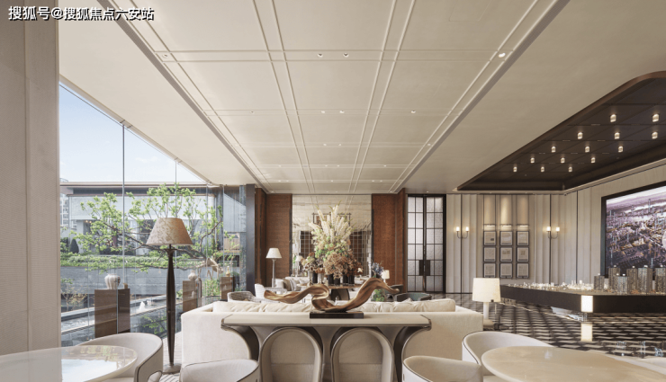 丽香庭的会所空间打破传统平面布局,创新性地将会所与泛会所融为一体,以垂直空间结构优化功能分区;同时遵循立体游园动线,确保空间布局的合理性。生活馆作为示范区核心建筑,巧妙内退于主庭院与次庭院之间,大面积玻璃幕墙的应用,使地面层的生活馆、茶室及地下一层的健身房、瑜伽室、恒温泳池、私宴厅、棋牌室等空间,均能直面庭院景观,实现全方位的景观渗透。每个独立大空间内采用开放式功能分区设计,在保持通透感的同时,兼顾私密性与舒适度。
