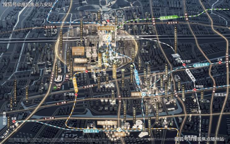 项目直线距离杭州西站约500米,三轨交汇(地铁3号线、12号线在建、19号线) 的交通优势让其瞬息间畅达全城。杭州西站作为超级枢纽,已开通杭州至香港的直达列车,5月1日累计到发总客流达175,288人次,创下单日最高发送客流纪录。