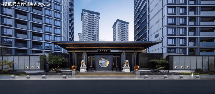 项目以门庭为礼序之始,南、北区各配置磅礴威严国风大门,为每一次回归赋予尊贵仪式感;建筑立面,三面大面积铝板+玻璃、涂料等用材,雕梁画栋国风意境,简约不失华贵;多进式归家园林,汲江南山水、历史源流、人文风物之精髓,绘就东方山水画卷。