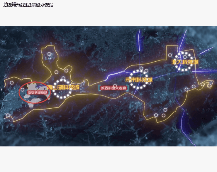城西科创大走廊西至浙江农林大学,北至西湖区灯彩街、杭长高速公路、临安区中苕溪一线,总面积约 390 平方公里。 核心构成:一廊四城两翼,“一廊”是东西科创主廊道,核心是“四城”:紫金港科技城、未来科技城、云城、青山湖科技 城,“南翼”向之江延伸。 临安以青山湖科技城产业平台为核心融杭发展,到链接西部建设於潜工业功能区,临安自东向西规划的"1+3"产业主平台和 “六大园”,包括青山湖科技城核心区(青山+横畈区块)、高新技术产业园(金马-高虹产业区)、玲珑工业功能区(玲珑-锦南 产业区)以及於潜工业功能区,将原有产业平台优化提升,科学运用存量资源,用以规划未来发展空间。其中作为临安“六 大产业园”之一的鲲鹏产业园,此前拟选址于滨湖新城长桥区块,目标是打造楼宇经济新标杆、城市形象新地标,距离本案 仅 1.5 公里!