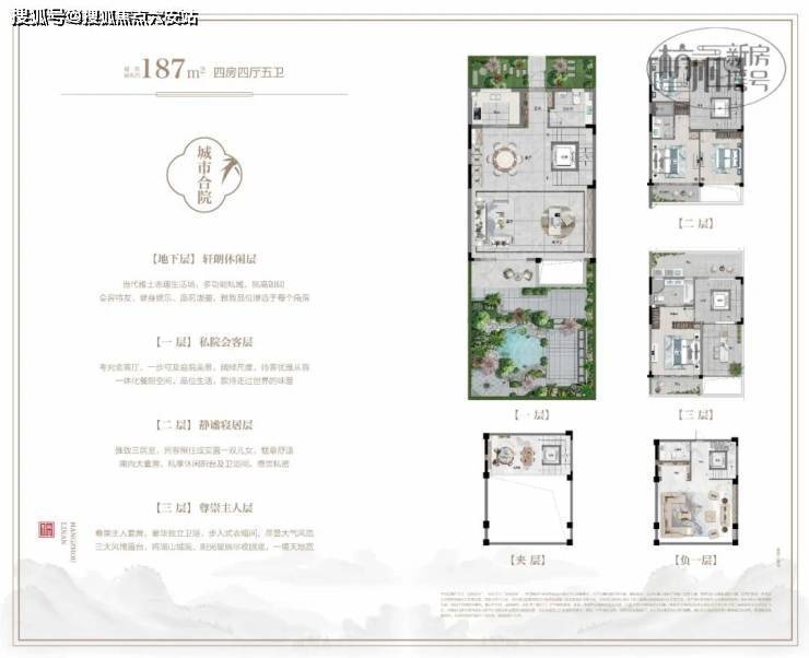 荣栖贤府加推 | 187-195㎡合院:5.6米全明地下室,三重院落,一线湖景视野