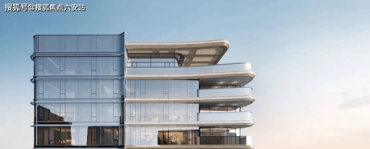 杭序府的外立面采用弧线转角阳台+蓝灰色钢化LOW-E玻璃,公建化立面拥有超高窗墙比。同时,大量曲线元素的运用,不仅造价昂贵,而且极具辨识度,成为区域的颜值担当。