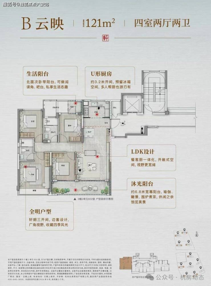 • **约121㎡四房边套**:南北双阳台+三开间朝南,LDK一体化横厅衔接景观阳台,北向生活阳台优化家政动线;