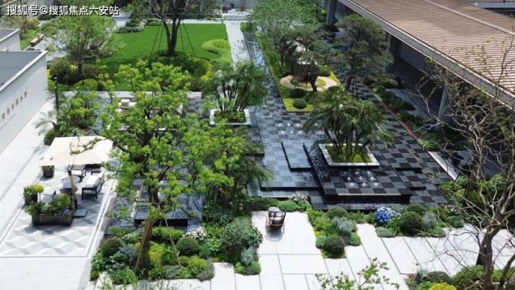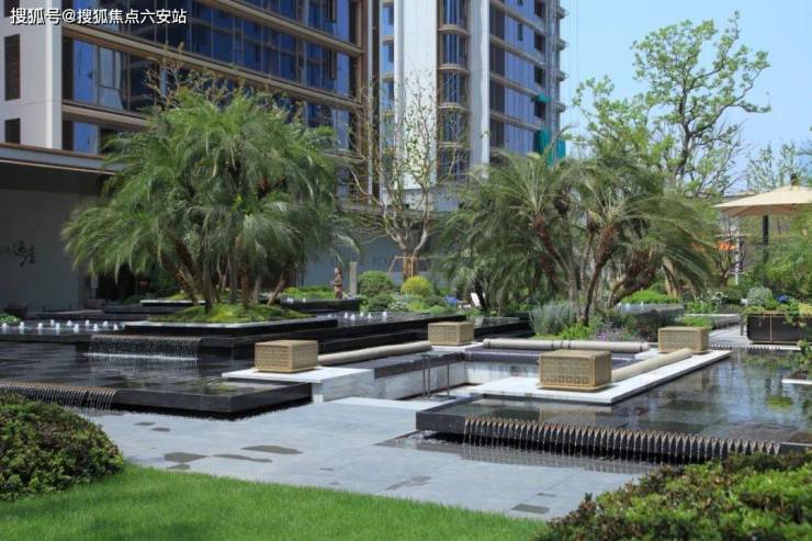 以四季酒店的度假体验为灵感,明湖逸庐将“水-洲-船-月”的意象融入园林——水景随地形起伏,洲屿点缀其间,船型廊架与月洞门相映成趣,四季有花、步步有景,让业主在社区内就能感受“度假式”的松弛。