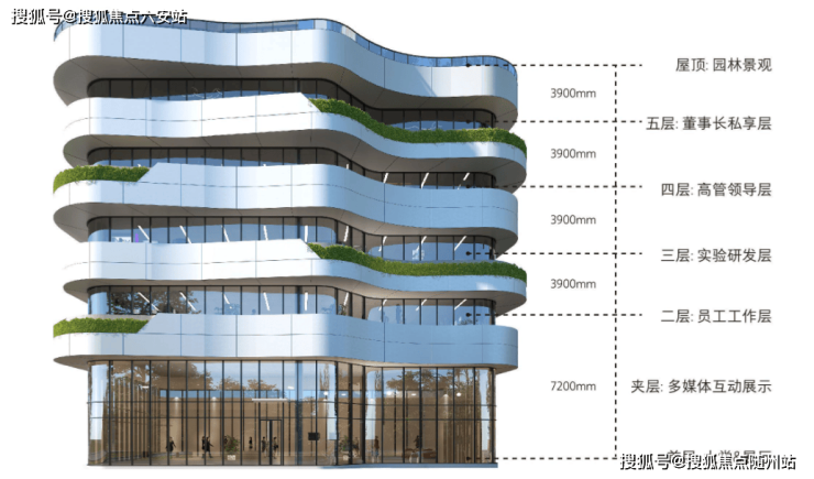 2000-2550㎡主力户型:地上4-5层+屋顶花园,首层层高7.2米,独立冠名权+独立产权证,企业可抵押、转让。