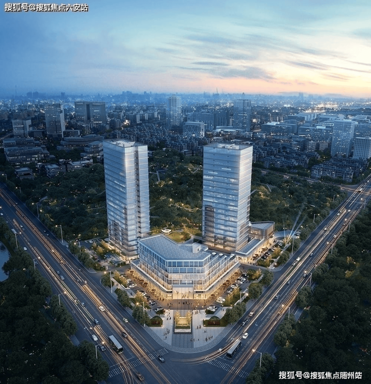 项目总建筑面积约3.2万平方米,由三栋办公楼和一栋商业楼组成,容积率仅约2.5,建筑密度控制在29.7%,以低密规划保障社区的舒适性与私密性。建筑立面采用玻璃幕墙为主,配以270度全景设计,单层层高约3.85米,一楼大堂挑高约4.7米,营造通透大气的空间感。