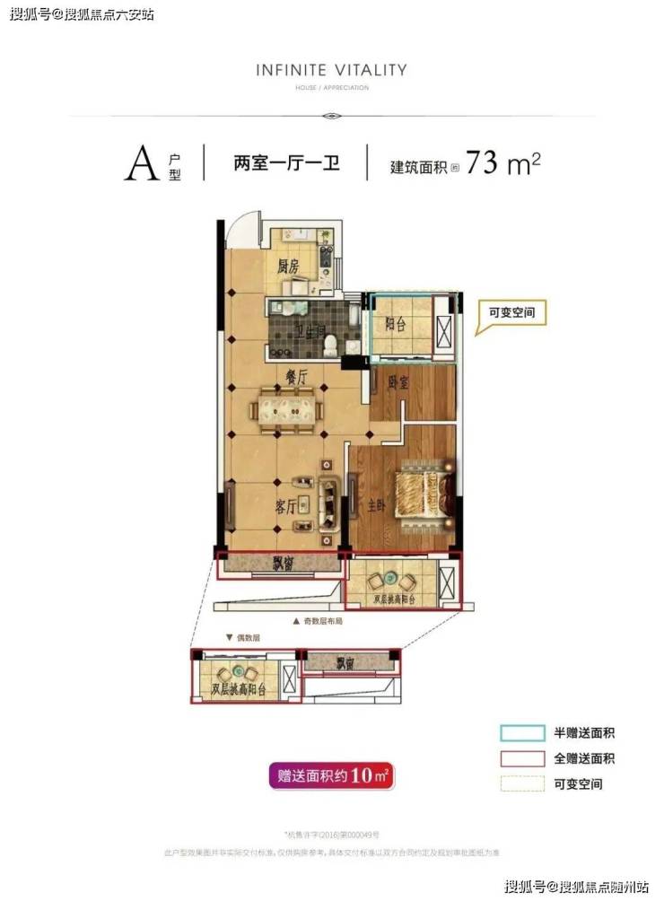 【73方】对于小户型来说,73㎡的户型,也做到了两室两厅一厨一卫,其中它的阳台是云锦城特有的“双层挑高”。相比于“一步到位”的购房者,这类户型更适合刚需家庭。