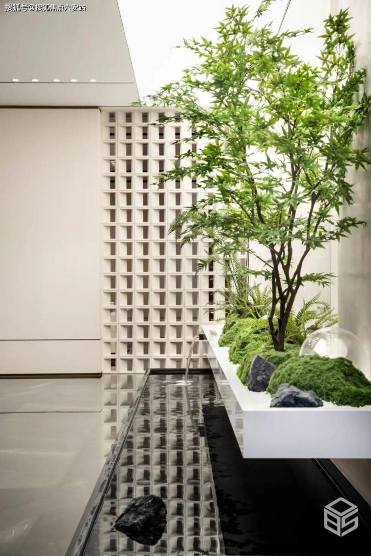 自然景观与纯粹的室内相交织,徐徐渗透出一缕惬意氛围。内敛的东方情怀在这一刻悄然释放,流动的水系也在静默涌动,同绿植景观造景共同打造轻松舒适的社交场景。
