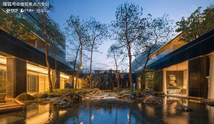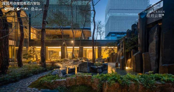 特邀近180年历史日本植弥加藤造园社共创设计,以“千里江山图”为灵感取境,巧妙运用景观高差处理手法打造下沉式庭院,围合一方大美隐于内的“泛会所空间”。