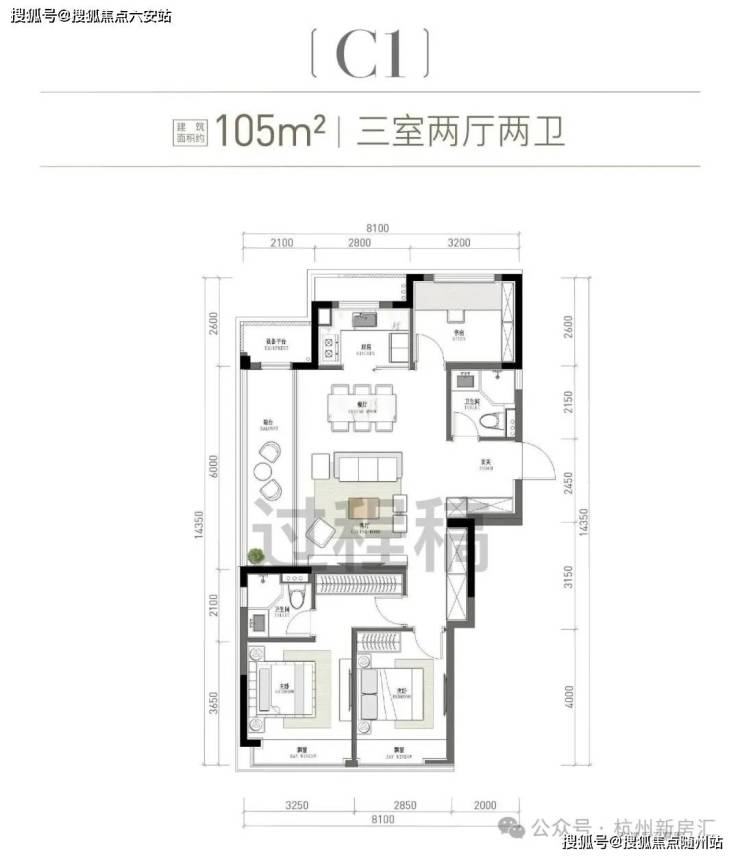 约110平方米三房两厅两卫户型为边厅设计,拥有约29平方米的漫游式方厅和6.3米跑道式阳台,三面采光。独立玄关设计,双侧收纳空间,预留双开门冰箱位,实用性倍增。