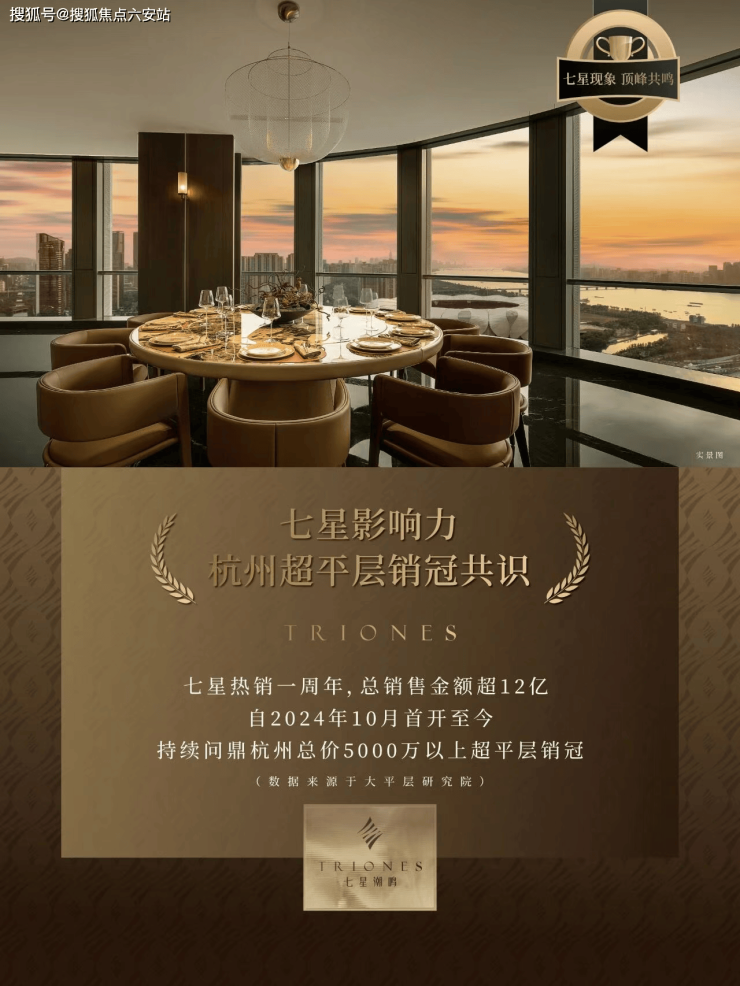 七星现象,顶峰共鸣,七星潮鸣自2024年10月首开至今,总销售金额超12亿,持续问鼎杭州超平层销冠,创造杭州超平层影响力、产品力的代言