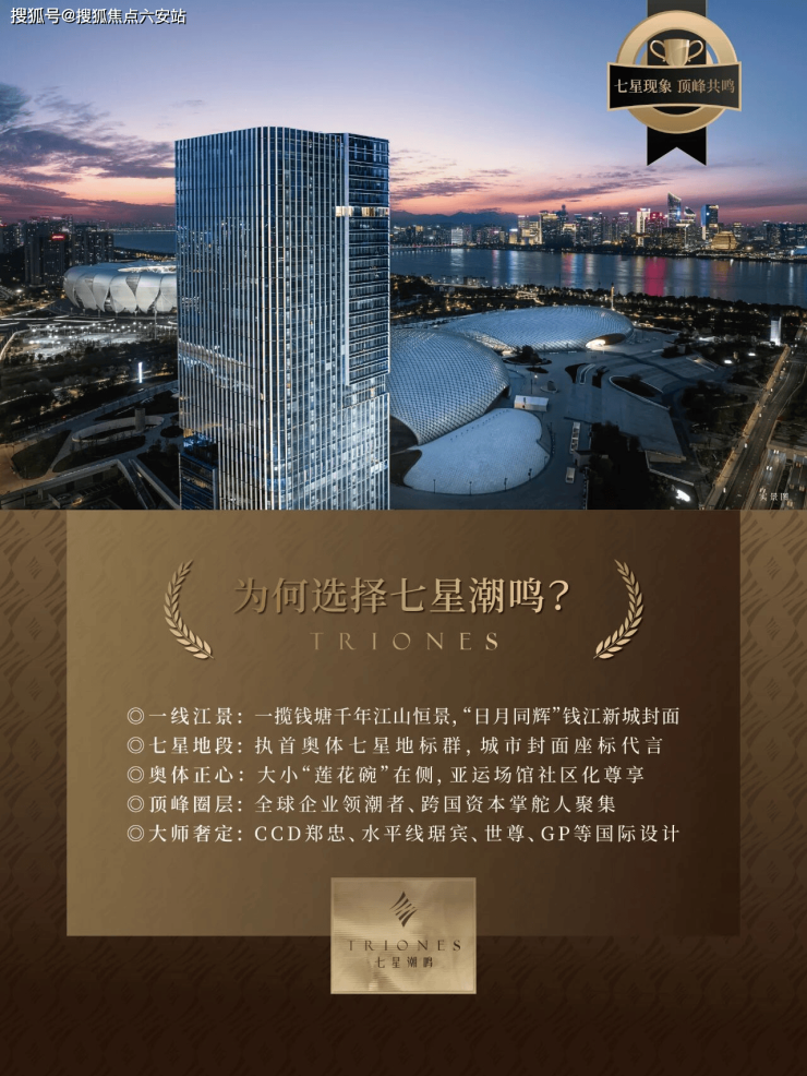 正看“日月同辉”一线江景,执首奥体七星地标群 ,大小“莲花碗”亚运场馆社区化尊享,汇聚顶峰圈层,全球大师奢定的领先审美与生活方式,时代、城市与信念,共同造就杭州只有一个七星珍藏。