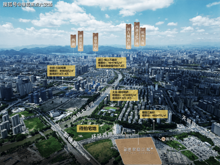 项目直线距离武林广场杭州大厦4.5km,钱江新城万象城3km,江河汇IFC2.5km