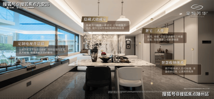 厨房标配方太三件套(侧吸油烟机、三眼灶、洗碗机),主次卫均用智能马桶,客厅岩板背景墙,提供香奈儿、奶油风、现代雅奢三种风格选择。