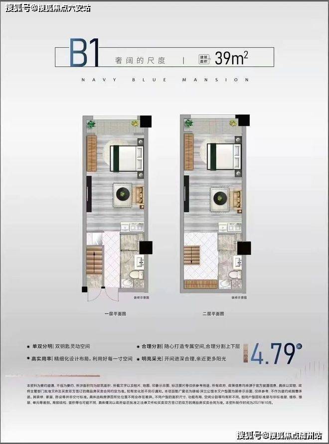户型设计革新:主力33-55㎡,层高4.75米,买一层享两层,得房率78%,独立双入户门+双卫浴配置,实现“上下独立出租”或“自住+工作室”多功能布局。