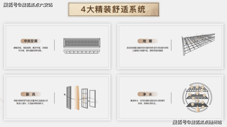 溪揽星院还甄选国内外知名精装品牌,全屋标配有中央空调、新风、地暖、净水四大件,而这些基本出现在杭州4W+的项目配置中。