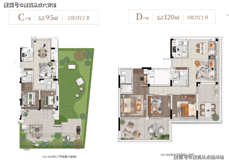 #### **建面约95㎡「云栖」:三房两卫,花园秘境**