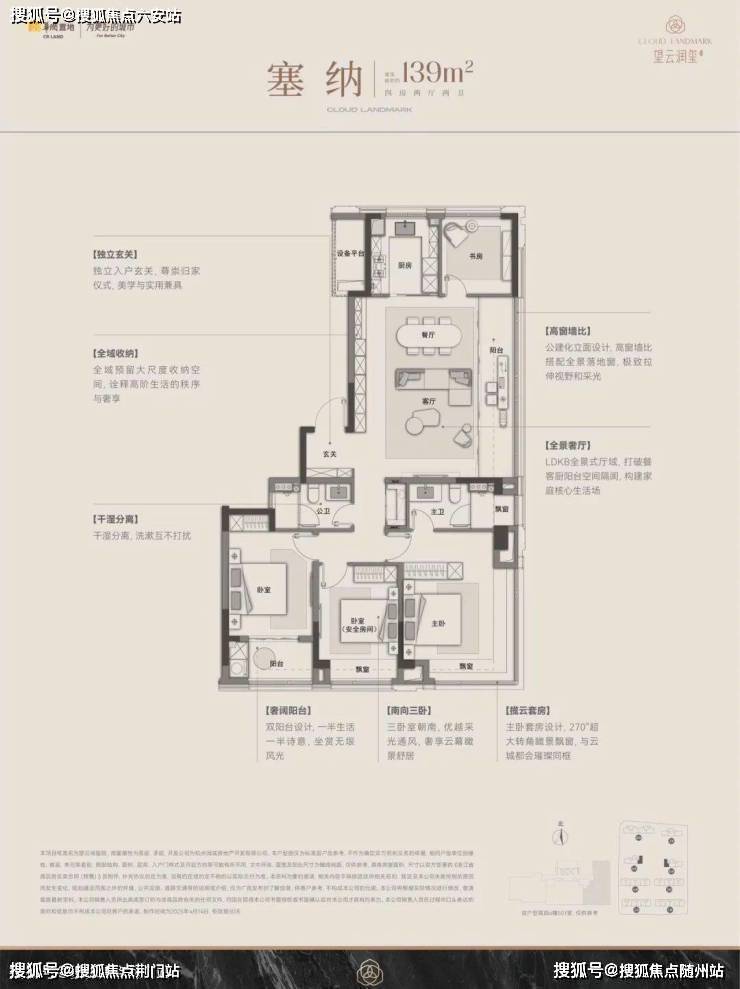 【奢阔面宽】约14米非凡面宽,奢阔南向四开间,舒展阳光奢居大境 【阔境阳台】南向约7米超大全景阳台,50%计容空间实现100%的无界体验