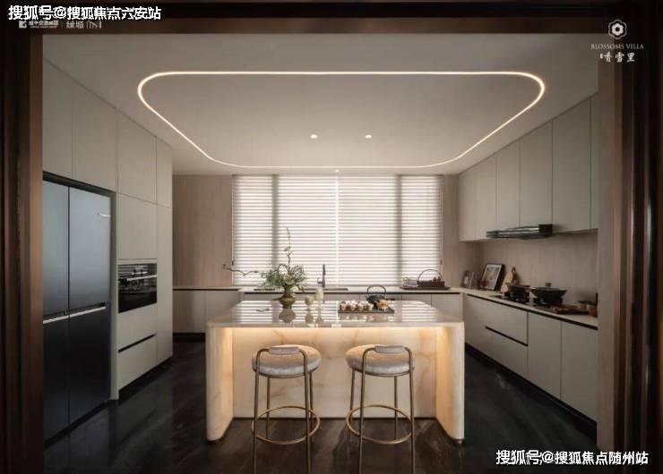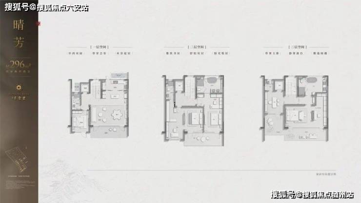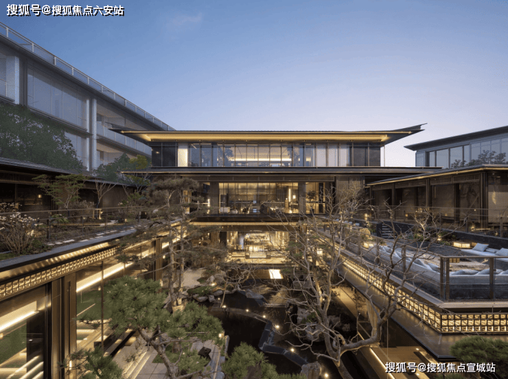 建筑立面:古今交融的诗意表达:外立面以香槟金铝板为基调,搭配蓝眼睛石材与玻璃幕墙,融合传统歇山重檐、纳福悬鱼等元素,既保留宋式建筑的对称美学,又赋予现代建筑的轻盈通透。合院组团采用三面庭院设计,L型景观面与环绕式檐廊,将超山梅影、丁山湖光引入每一扇窗景!