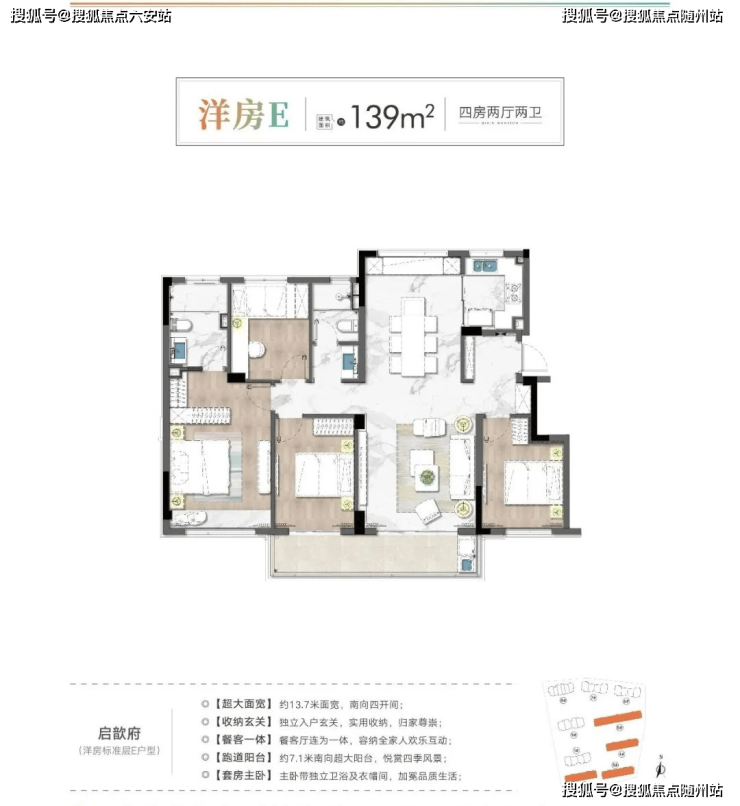 建面约139㎡大四房洋房产品,总价仅约300万元就能一步到位。