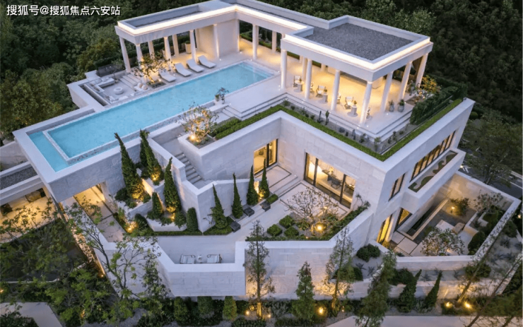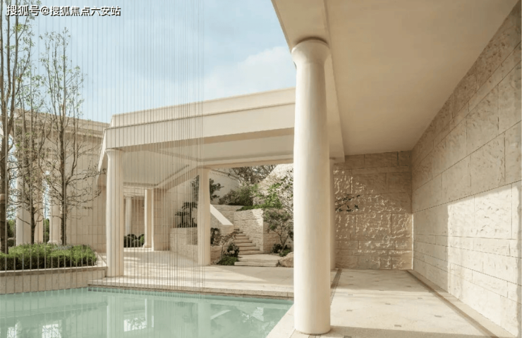 绿城·溪径恒庐是容积率1.01的低密项目,新一代的低密项目,都会更注重更高浓度的公共空间。绿城·溪径恒庐的会所空间有将近1.2万平米,除了地下会所空间,还在街角设计了一整幢现代版的「雅典卫城」三层会所。