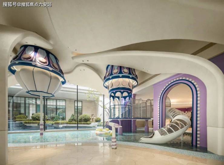 一座花香满溢的下沉式庭院嵌在泳池与健身房之间,让游泳的人与健身的人若隐若现地互为风景,而孩子们肯定更爱与室内恒温泳池相连的水上乐园。它们的窗外,就是地下会所的第二个下沉式庭院,这样的庭院,就是建筑体的呼吸口,让室内也拥有变化的时序。