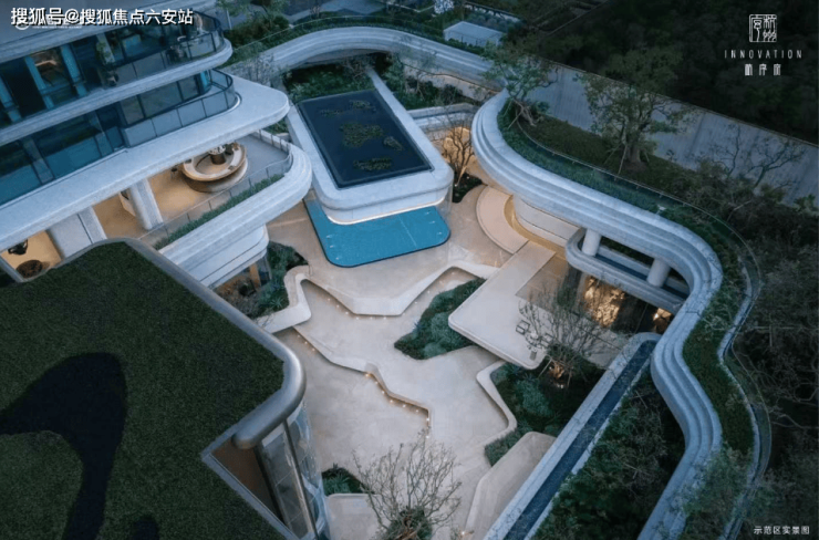 高层立面更是如此,不但石材弧线卷到屋顶,还与曲面玻璃“飞针走线”缝合。用的全是0.16低反射玻璃,类似于博物馆的用材,既能保护隐私,又能防弧面眩晕。
