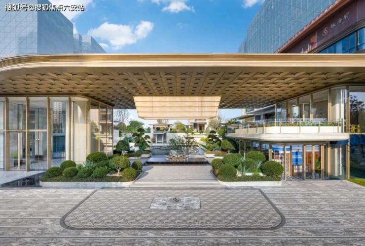 走近项目,约85米超级画幅门厅的第一笔,飞扬在高约9.5米的领域感门头之上,搭配鎏金天幕铺陈,营造出精致、轩昂、高级的华宅氛围。归家的第一眼,便是一场视觉盛宴——门头以流畅的弧线勾勒现代美学,鎏金材质在阳光下折射出奢华光泽,仿佛一座微型艺术殿堂。