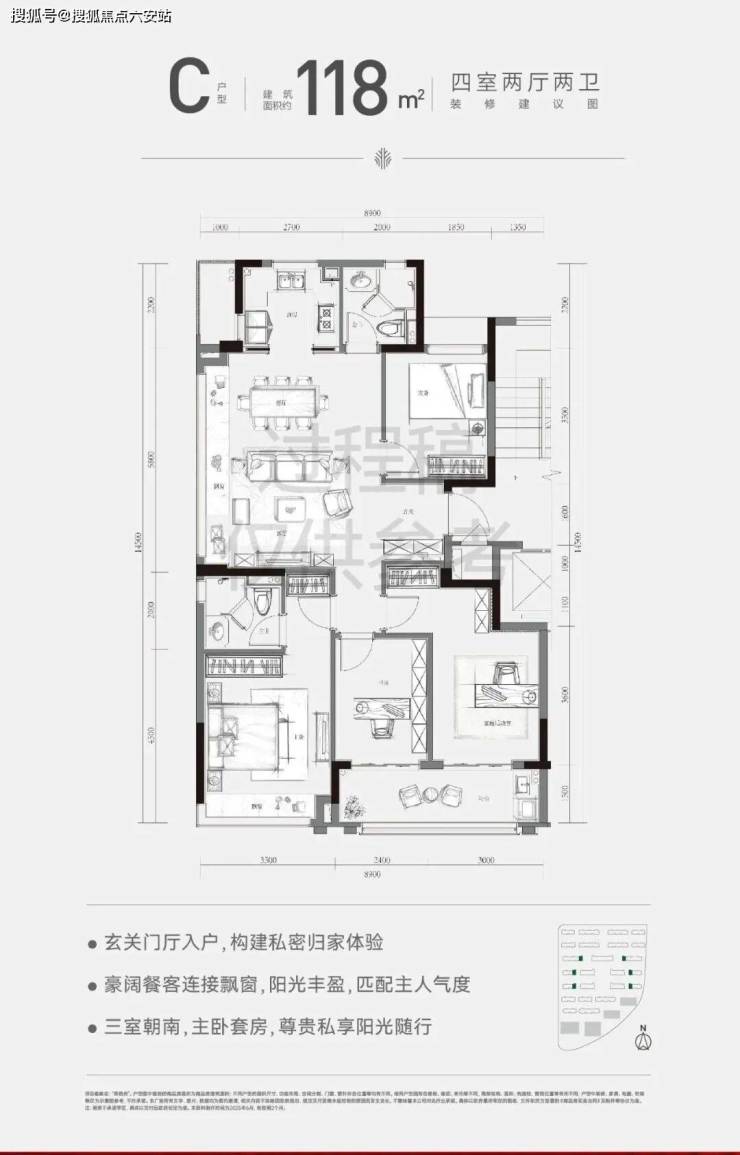 90%得房率:全系户型采用短进深、大面宽设计,空间利用率极高,117㎡实际可用面积接近130㎡,139㎡更可拓展出“3+1”灵动空间;