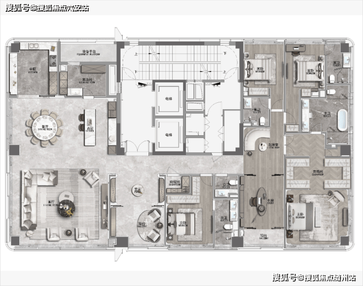 梁志天&上海世尊共同执笔:410㎡湾潮户型:WSD上海世尊团队执笔,以独一无二的“摩登东方”设计语言,抽象提取东方写意精神,与复古摩登、自由艺术平衡相融,领潮钱湾黄金时代。