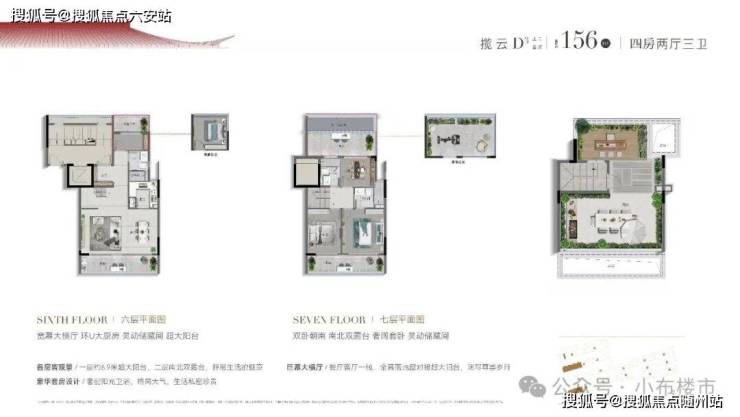 上叠(建面约156-177㎡):屋顶露台+全景窗,尽揽天际线