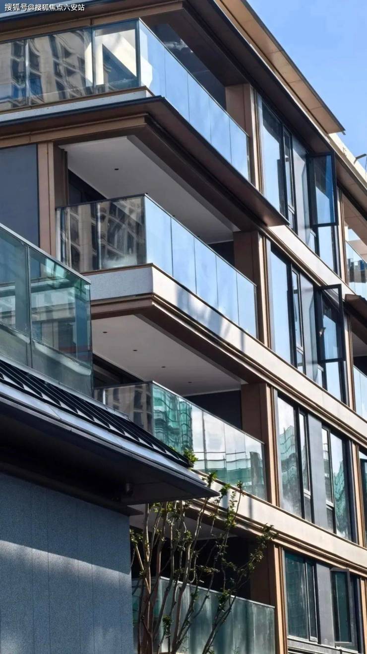 浅色石材基底:搭配金色勾边与大面积玻璃幕墙,融合宋式飞檐、青松格栅等元素,再现东方隐奢意境,比肩江南里、凤起钱潮等顶豪气质。