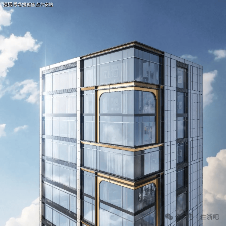 错层立面设计一道金色弧线,形成“金弧云镜”独特立面美学;