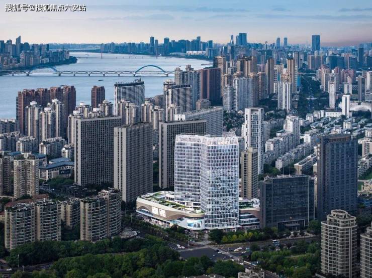 采用Low-E中空玻璃幕墙、日立高速电梯(3米/秒)及多联机智能空调系统,获LEED金级预认证,能耗降低30%。建筑灵感源于西湖群山与钱塘江波纹,塔楼曲线柔美,顶部双曲金属屏设计成为区域地标。
