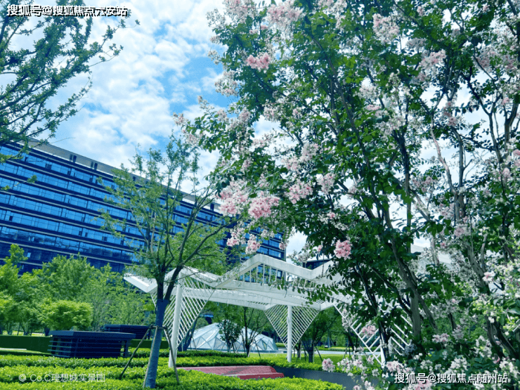 园区高颜实景也是亮点满满,“超流体”立面线条熠熠生辉,铝板+大面积玻璃融合相交,呈现出极简又富有质感的立面美学。园区修剪精致的园林植物与建筑交相辉映,大面积绿地阳光草坪、钻石之心等折叠景观,带来扑面而来的度假感,在繁华密林中给予生活最简单理想的诗意,带来更富想象美好生活。