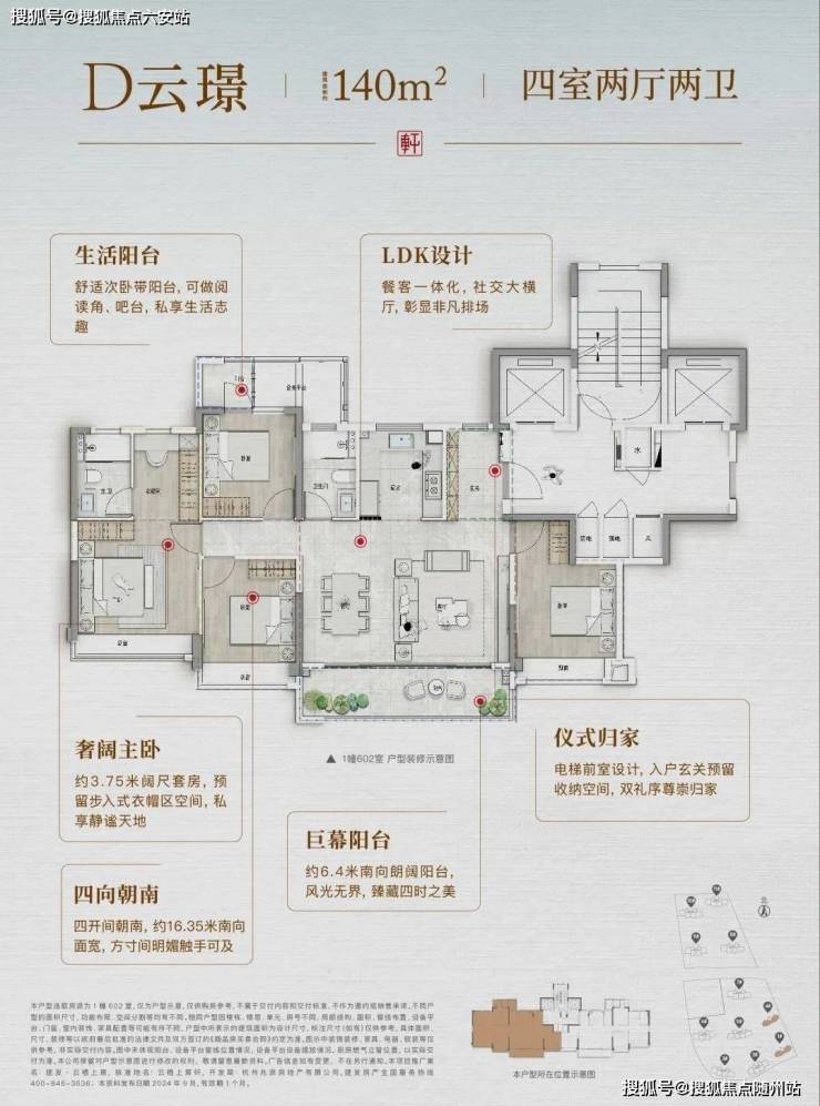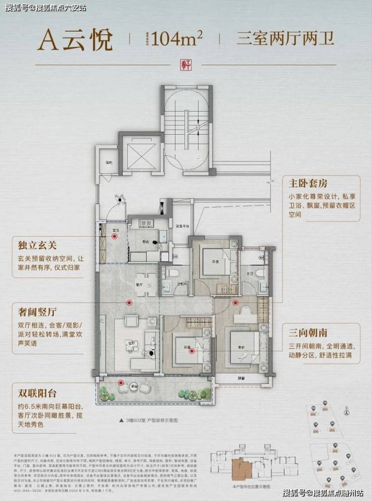建发云栖上宸的户型设计精致合理,建筑面积约104-140平方米,包括三到四房全功能可变户型。户型设计注重实用性和舒适性,三开间朝南带阳台,全明采光,确保室内光线充足。2个卫生间的设计避免了早起排队的尴尬。特别是约6.5米的阳台,不仅采光通风效果好,还注重隐私性。