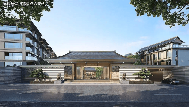 外立面融合良渚玉琮纹样与太和殿庑殿顶形制,复刻五步青云阶、铜狮镇守;园林以西湖郭庄为蓝本,打造“一轴两园十景”,约2700㎡下沉式庭院会所含恒温泳池、双私宴厅。