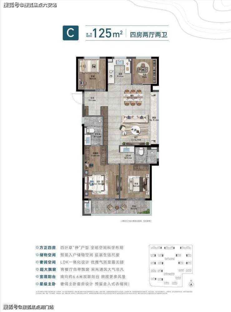 居住的舒适度,不止于外部环境的完善,更需要内部空间的加持,才能带来契合需求的居住体验。潮阅尚境府约125方户型,以“四叶草”为模型布局,酝酿理想生活的要义。