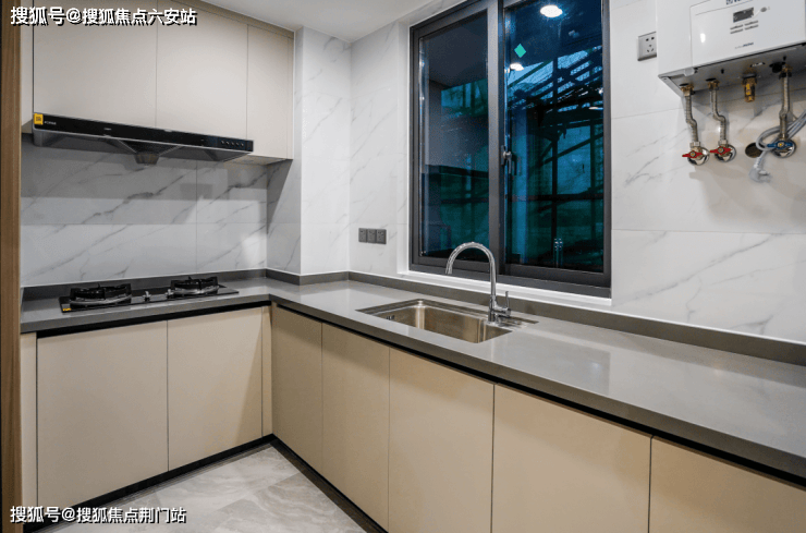 U型厨房窗户较大、采光优秀,且大量收纳柜体都做好: