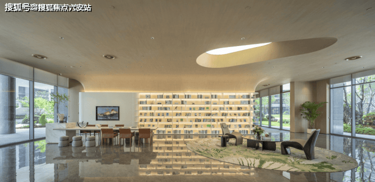 公共区域的尺度感同样惊人,挑高约6米的入户大堂,约300㎡的架空层业主公共空间,约2000㎡的地下会所,其中配备了约350㎡的星空恒温泳池,长约一公里的塑胶跑道,东西、南北双轴线约20亩中央景观……