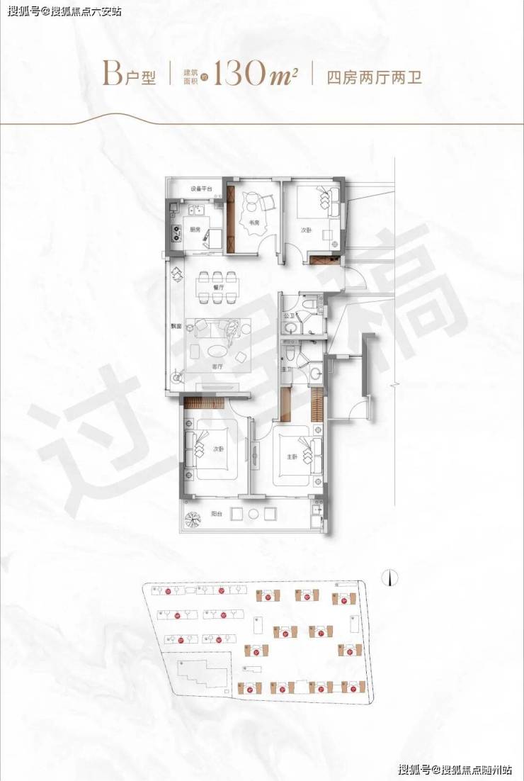 如果你想要舒适度进阶,也可以考虑边套建面约130方四房两厅两卫户型。