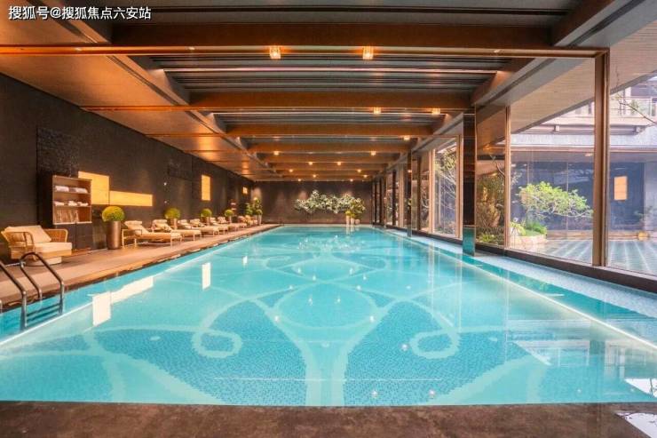 会所内,约25米长的室内恒温泳池采用大落地玻璃设计,视线向外自然衔接起了下沉庭院的天光水景,“放大”了泳池的边界,度假感直线上升;