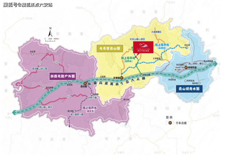 项目落址大天目名山圈,从项目出发,自驾即可至杭徽高速(杭瑞高速杭州至黄山段)藻溪互通,对接杭州主城西,可达杭州西高铁站