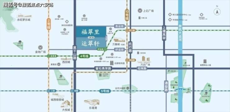 运翠轩位于地铁4号线好运街站西侧,好运路和勾阳路交叉口,小区北面是滨江在勾庄的另一个项目福翠里,年前已经交付。东面则是去年上半年售罄的锦海棠。2022年6月30日,滨江集团拿下北部新城2宗姊妹地块,即福翠里和运翠轩项目地块。