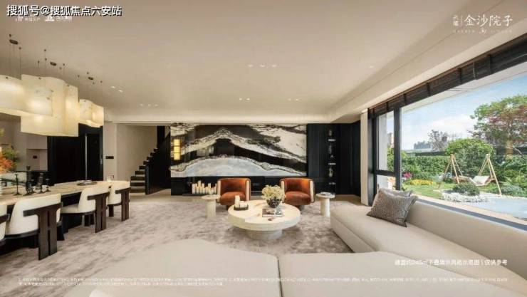 相比较纯低密项目,高低配的设置,让金沙院子拥有了那标志性的“镜面大水院”,可尽享庭院内约9000㎡的自然灵感花园和超2200㎡的特色水景空间。