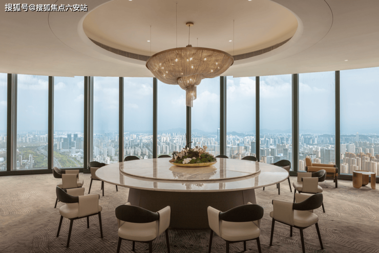 屋顶平台的线条进一步向外延伸,将建筑与景观融为一体,形成地景式的艺术美感。虽高度有异,但设计在元素、材质和形式上都与超高层建筑在风格上保持一致,因此空间的气韵顺畅流动在整个场域。