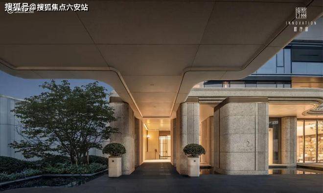 第二重门厅参考台北嘉佩乐酒店的叙事风格,以一座环形的前场庭院作为业主归家的情绪整理空间。环岛落客区打造“天光云廊”,营造从繁华到宁静的空间过渡,开启度假般归家体验。