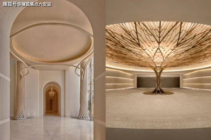 宾客甫至,三层挑空的前厅豁然展开,中央一株金属锻造的黄金树雕塑破空生长,迸发盎然生机,宛如与社区共生共荣的巨木,枝影扶疏,蔚然成观。