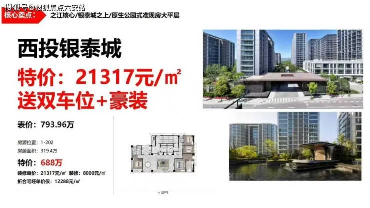 西投银泰城项目亮点 1️⃣自带52万㎡综合体(银泰、盒马配套很方便 2️⃣8幢围合原生的大平层(私密性强 3️⃣约45m宽的大门(高宅大院的气派感 4️⃣约7000方贝尔高林的度假园林景观(领先的公园式大平层 5️⃣每个架空层都做了会所(会所的实用性功能很多,开发商也用了很多心思在里面 6️⃣而且物业费才4.5元/㎡(含能耗 7️⃣今年9月30日交付,相当于现房了 8️⃣地下室星空门厅车库,简直为豪车量身定做