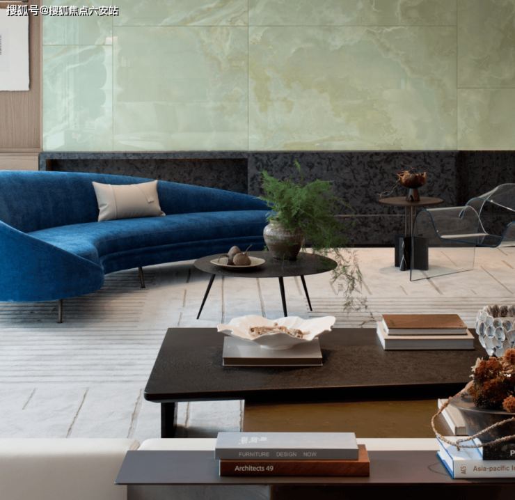将经典名画《西湖全景图》中的丹青意蕴融入空间营造,以风景开阖、空间对比等传统设计手法,结合青绿编织景墙、青玉、皮革和编织纹以及苔藓微山水景观,创造一处奥体之上江南庭院,和鸣经典美学生活。